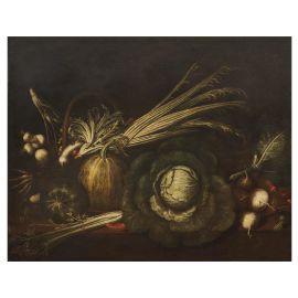 STILL LIFE WITH VEGETABLES, MUSHROOMS AND FISH