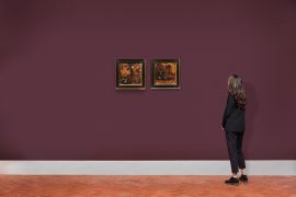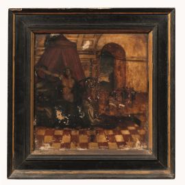a pair of paintings, oil on marble, 34.5x34.5 cm