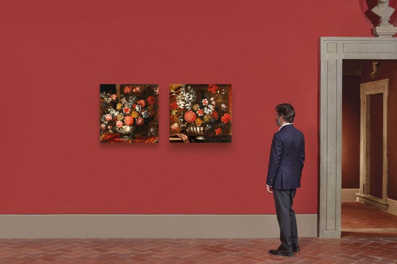 coppia di dipinti, olio su tela, cm 72,5x76