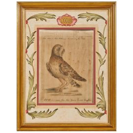 raccolta di trentasei tavole in carta applicata su tela montata su telaio, cm 40x29,5, provenienti dalla fondamentale opera di ornitologia pubblicata in Italia nel Settecento. Due in cornice, tutte con passe-partout, di cui alcuni acquerellati