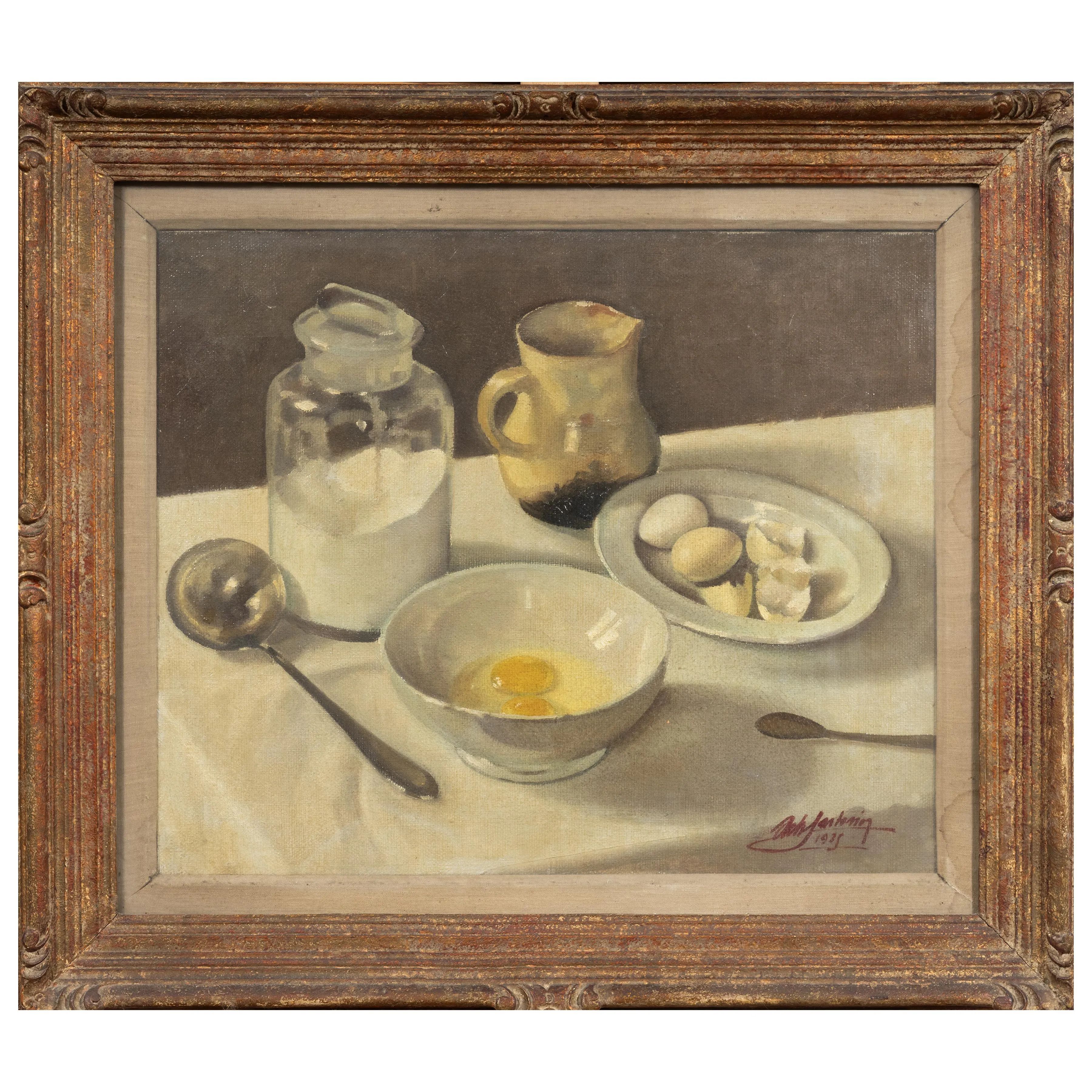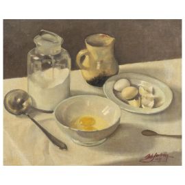 STILL LIFE WITH TABLEWARE AND EGGS