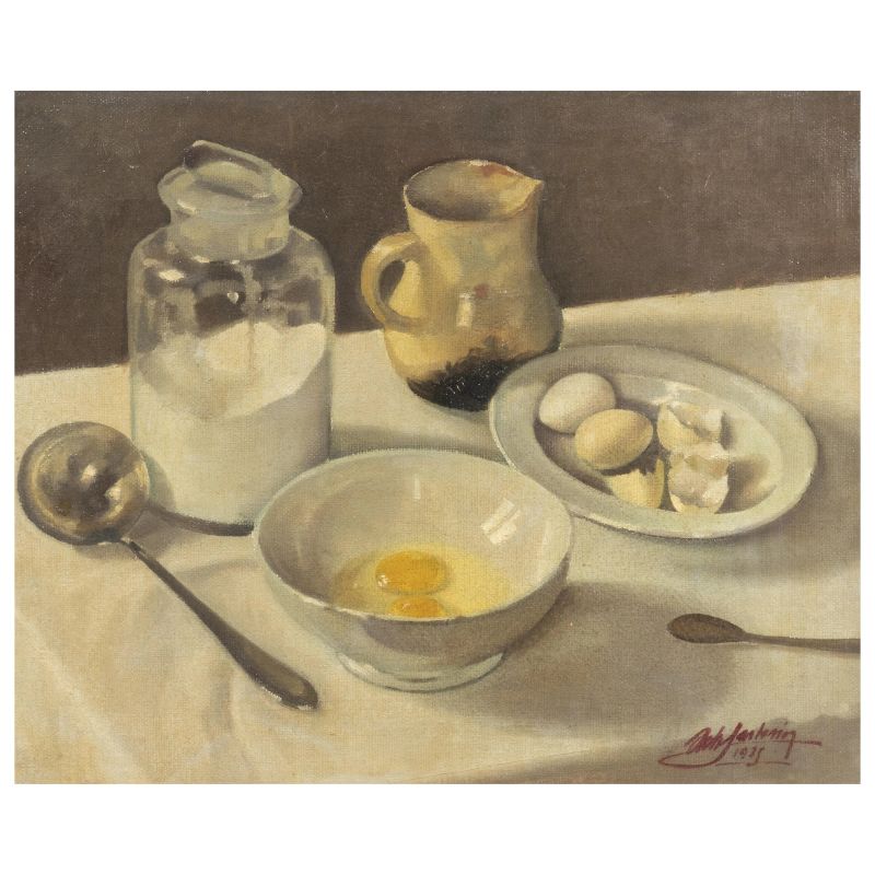 NATURA MORTA CON VASELLAME E UOVA