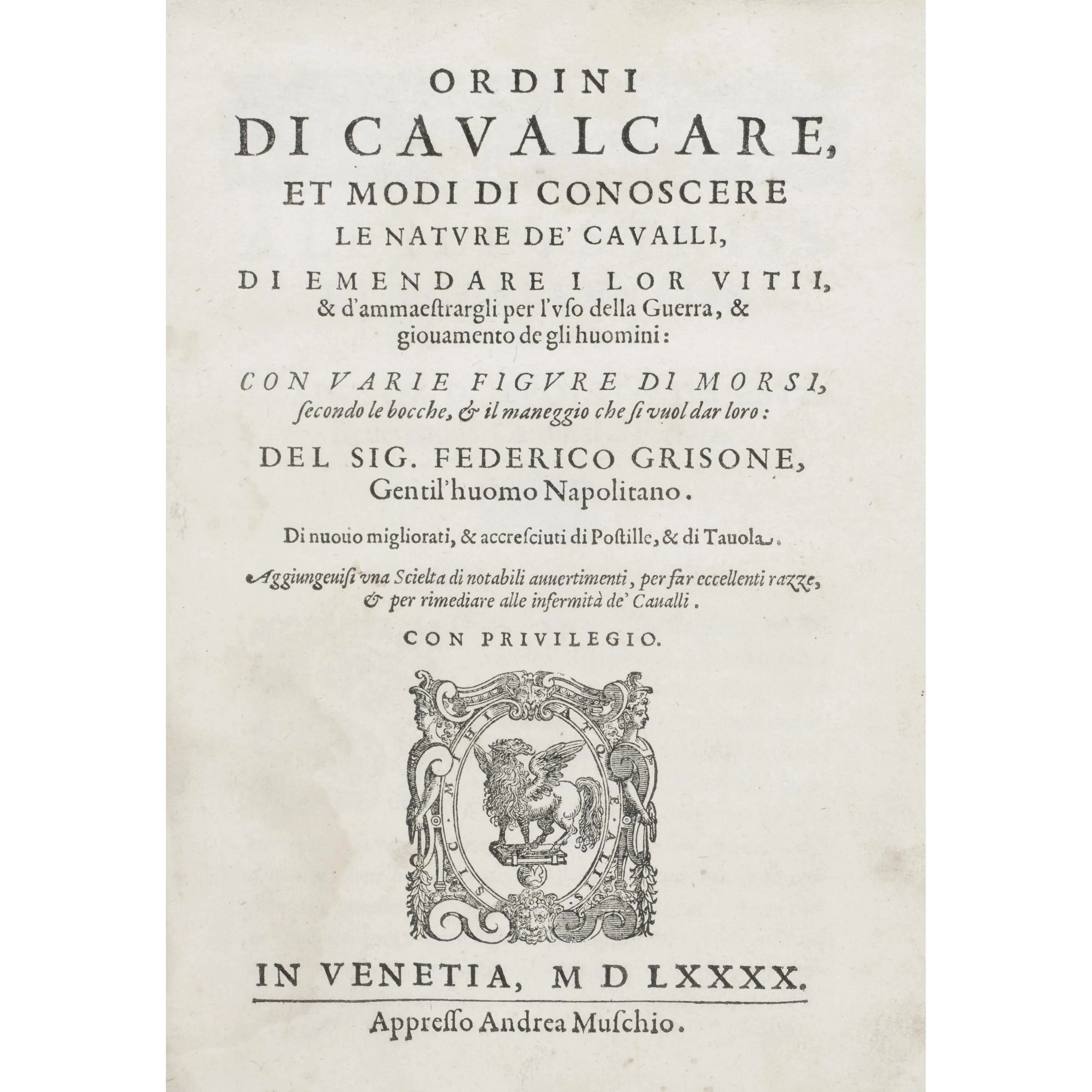 Grisone, Federico. Ordini di cavalcare. Venezia, Muschio, 1590.