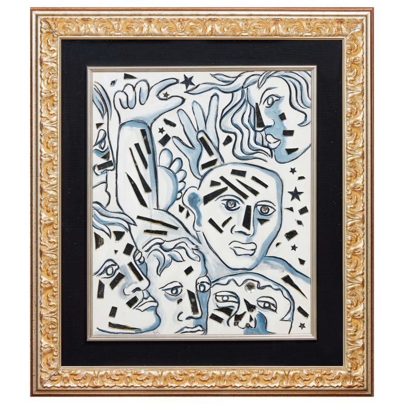acrylic and collage of mirrors mounted on cardboard and linen canvas