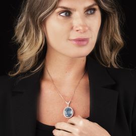 COLLANA PENDENTE CON ACQUAMARINA E DIAMANTI