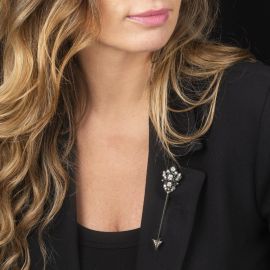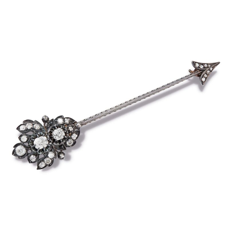 ARROW-SHAPED BROOCH IN SILVER AND LOW TITLE TWO TONE GOLD