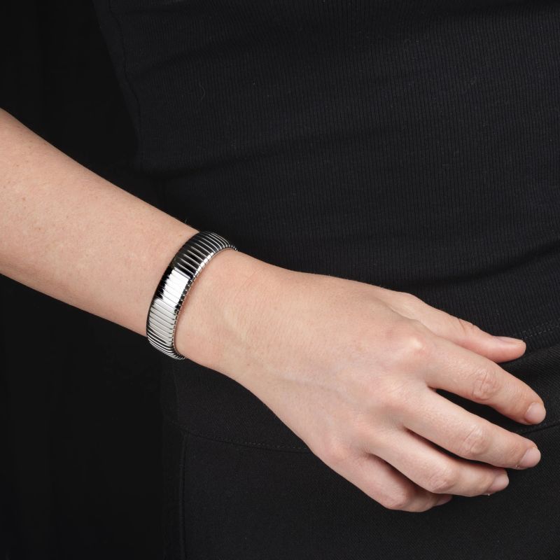 BULGARI CUFF TUBOGAS BRACELET IN STEEL AND 18KT YELLOW GOLD