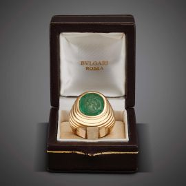 BULGARI ANELLO CHEVALIER CON SMERALDO INCISO