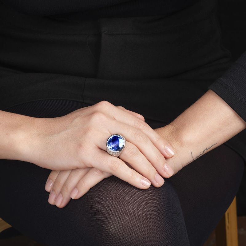 BURMA SAPPHIRE AND DIAMOND IN 18KT WHITE GOLD