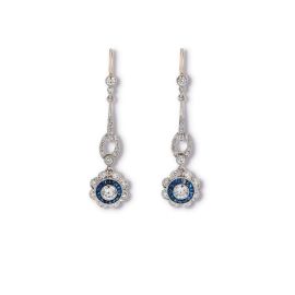 DIAMOND AND SAPPHIRE DROP EARRINGS IN 18KT WHITE GOLD