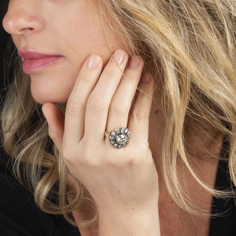 DIAMOND DAISY RING IN 9KT TWO TONE GOLD