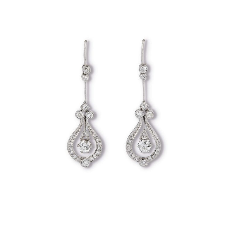 DIAMOND DROP EARRINGS IN 18KT TWO TONE GOLD