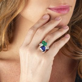ANELLO CONTRARIÈ CON ZAFFIRO, SMERALDO E DIAMANTI