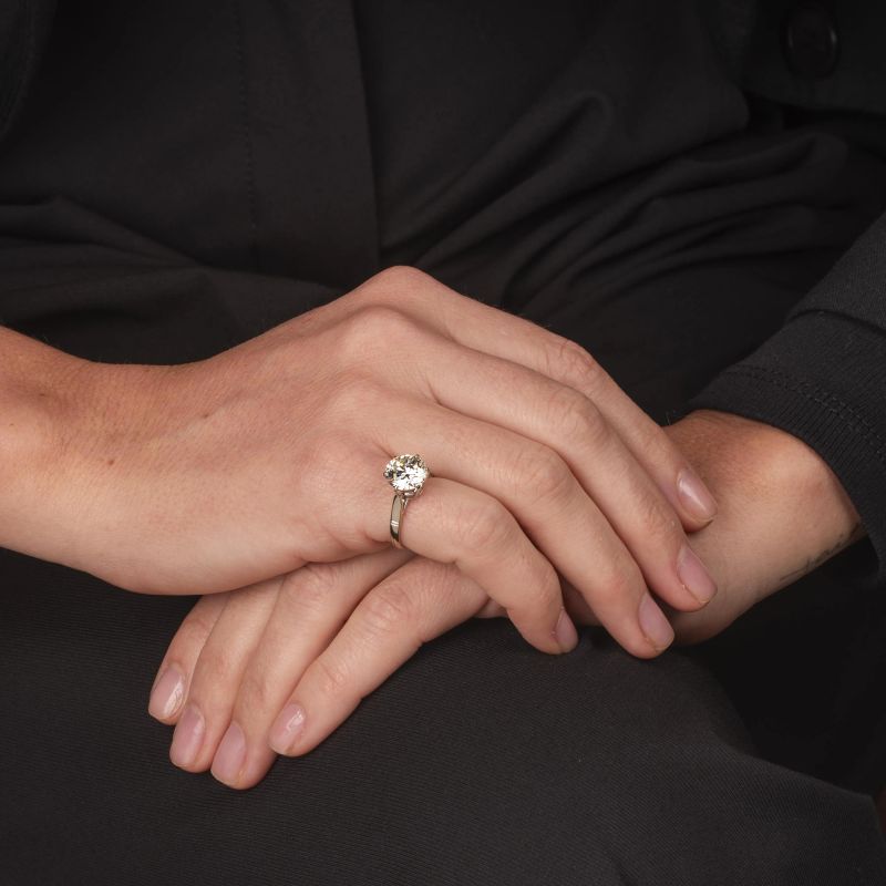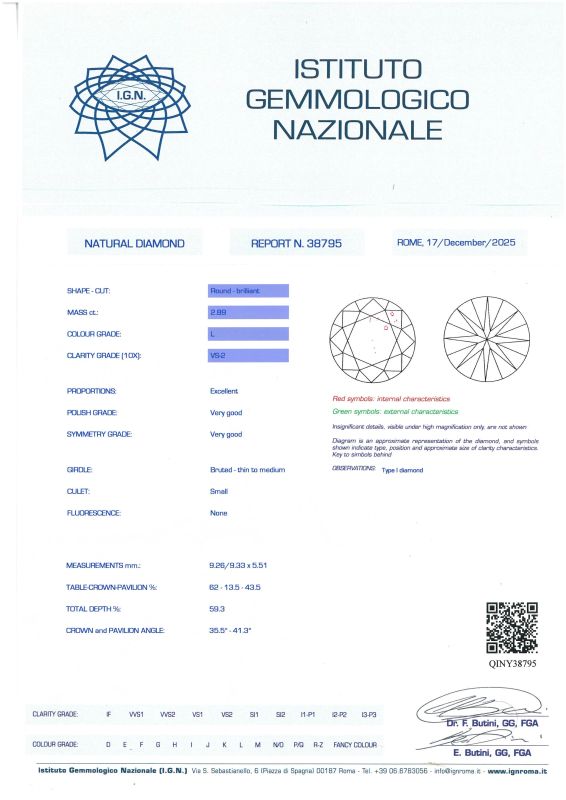 in oro bianco 18kt, impreziosito da un diamante taglio brillante di ct 2.89, colore L, purezza Vs2, mis. 9/49, gr. 3. Corredato di certificato IGN del 17/12/2025 attestante le caratteristiche della pietra.