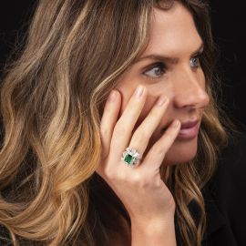 EMERALD AND DIAMOND RING IN 18KT WHITE GOLD