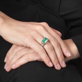 EMERALD AND DIAMOND RING IN 18KT WHITE GOLD