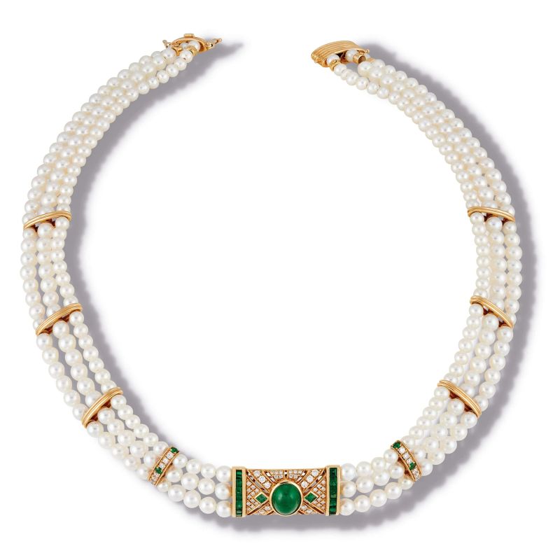 EMERALD DIAMOND AND PEARL COLLIER IN 18KT YELLOW GOLD