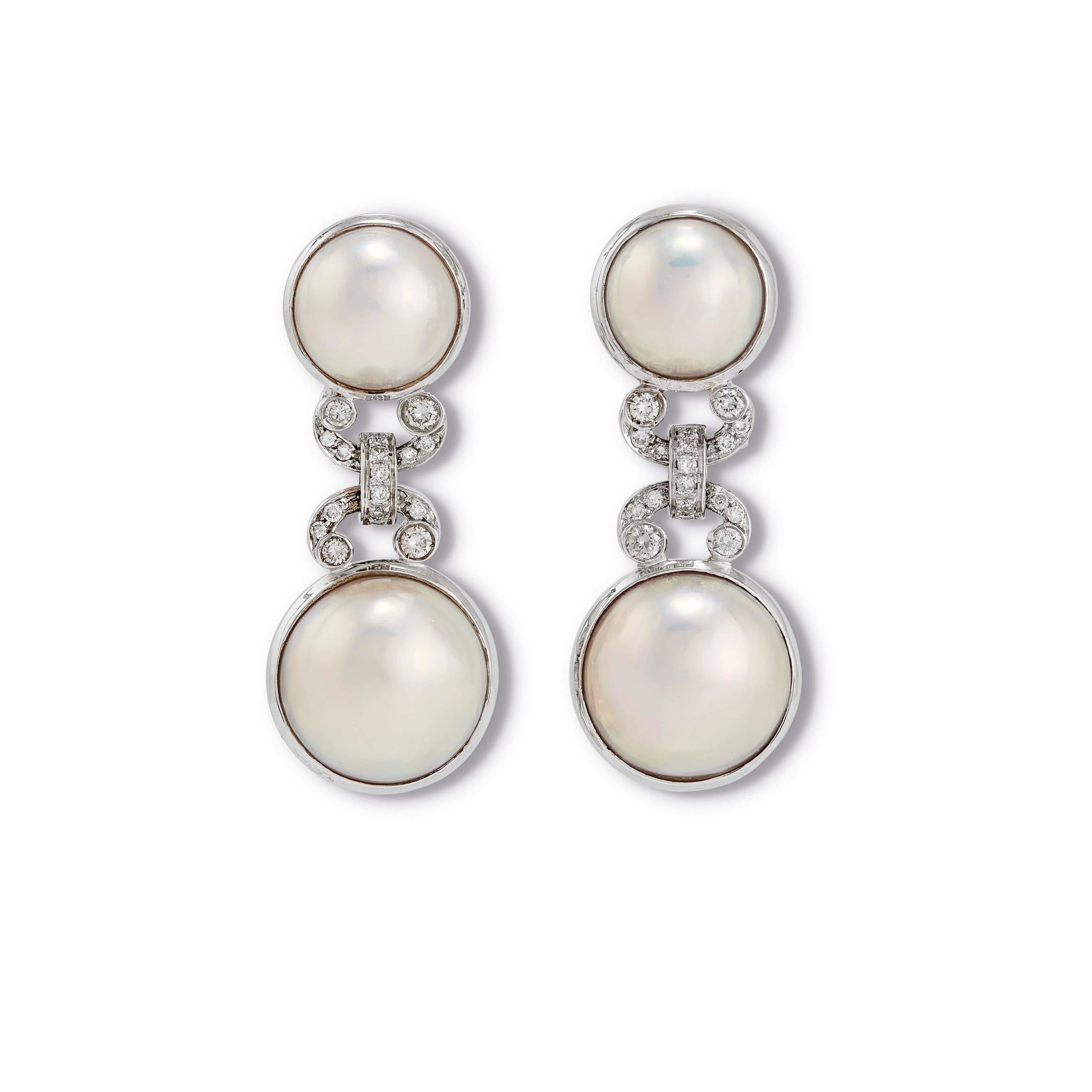 ILLARIO PEARL AND DIAMOND CLIP EARRINGS IN 18KT WHITE GOLD