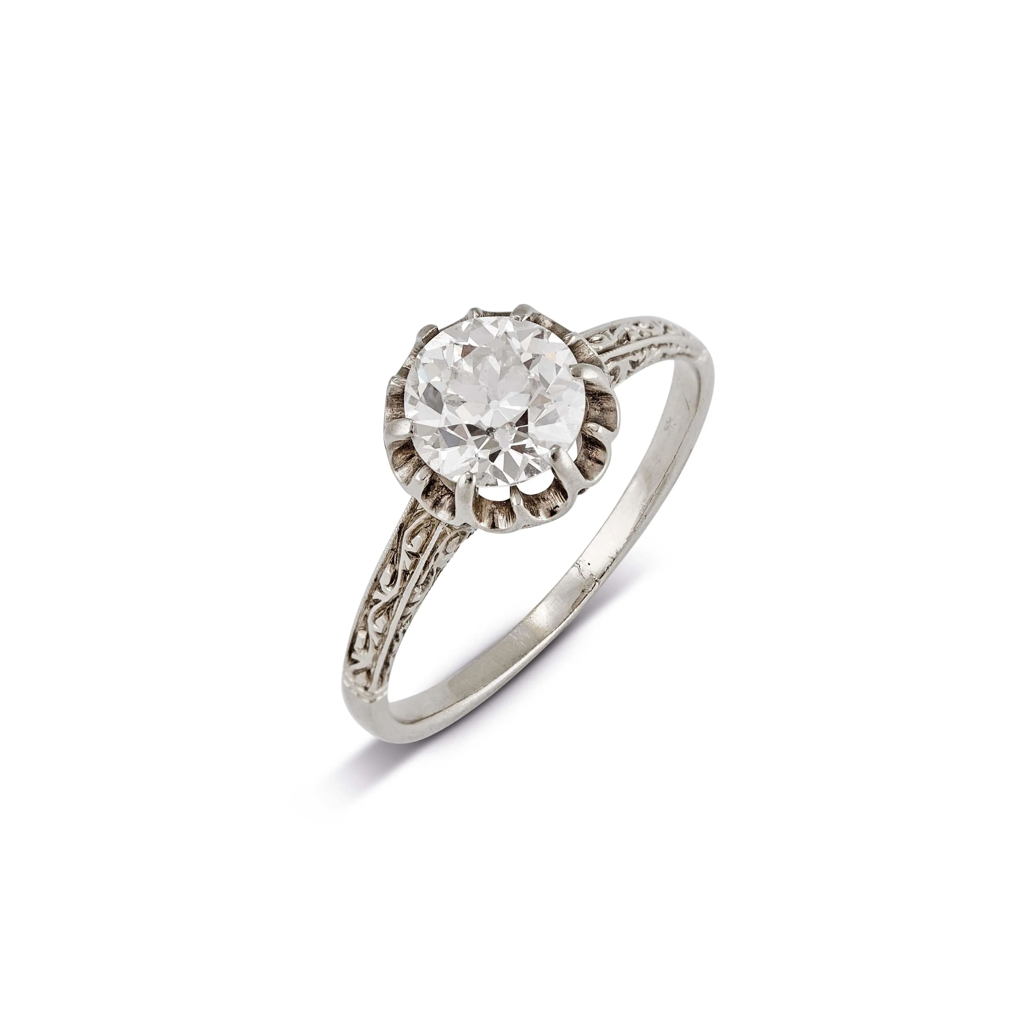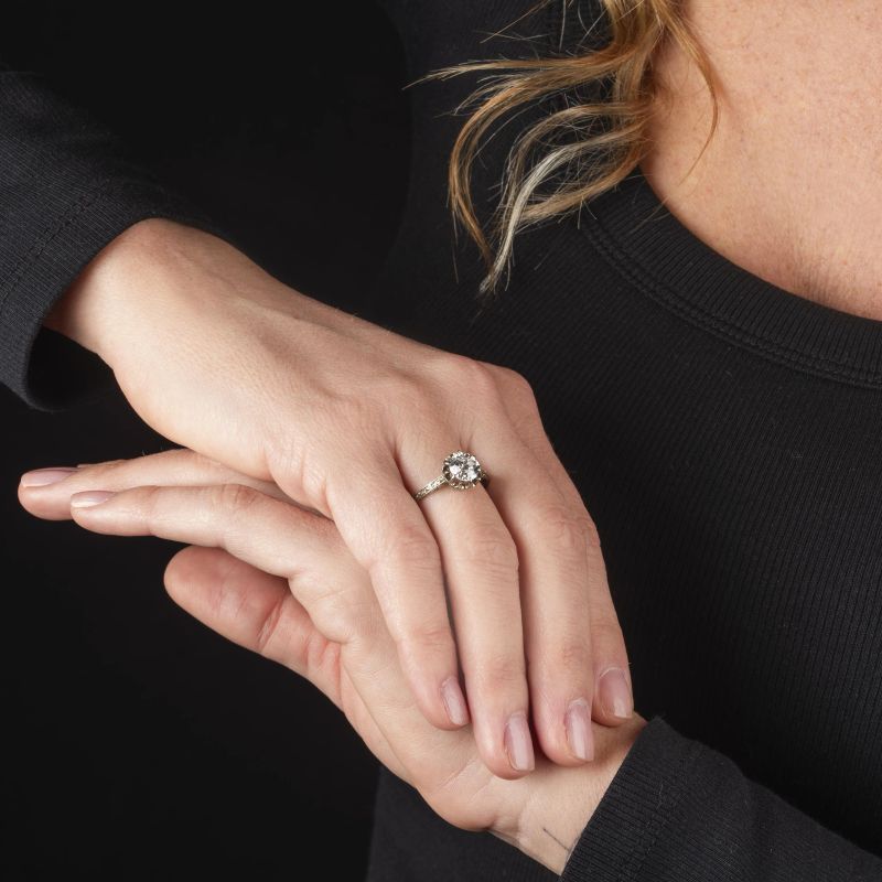 OLD EUROPEAN CUT DIAMOND RING IN 18KT WHITE GOLD