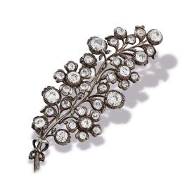 OLD MINE CUT FLORAL BROOCH IN SILVER AND 18KT YELLOW GOLD