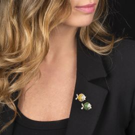 PAIR OF FISH-SHAPED CLUTCH BACK CLIPS IN 18KT TWO TONE GOLD