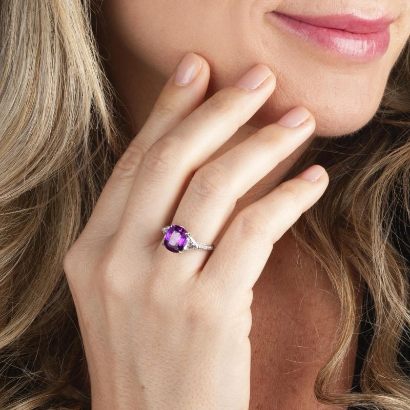 PURPLE SAPPHIRE AND DIAMOND RING IN 18KT WHITE GOLD