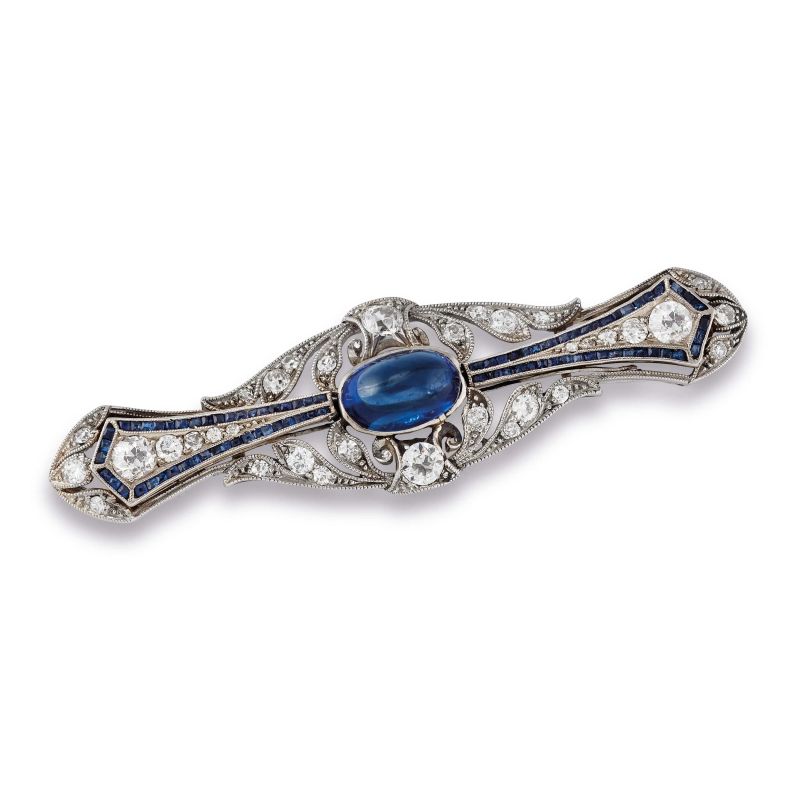SAPPHIRE AND DIAMOND BAR BROOCH IN PLATINUM