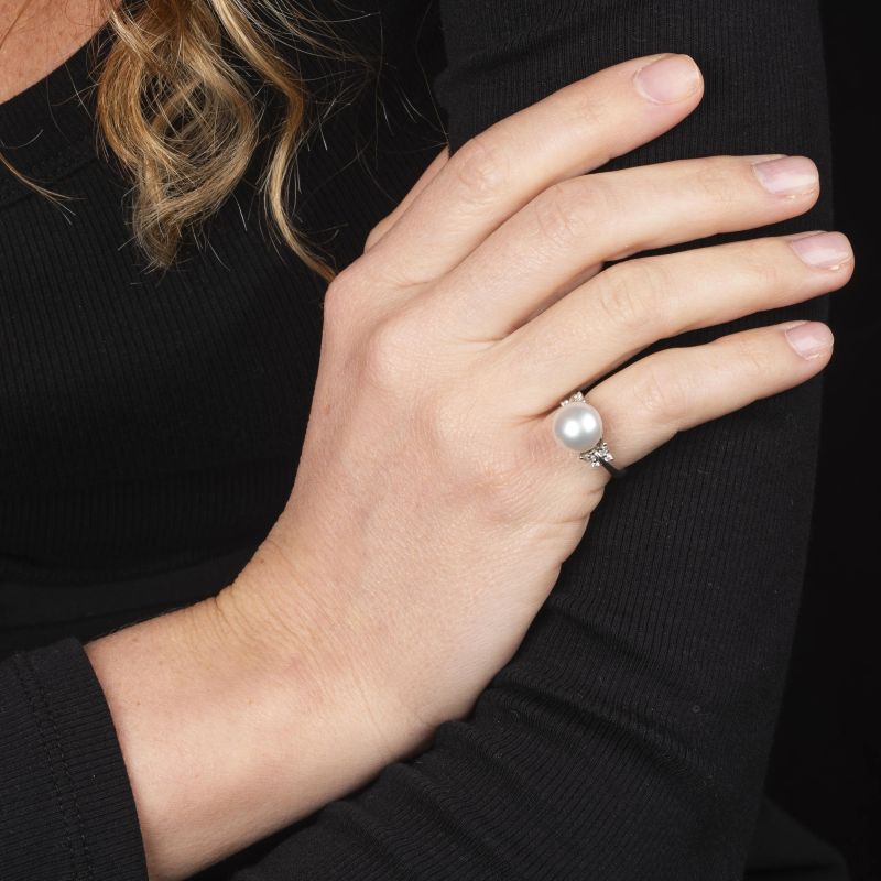 SOUTH SEA PEARL AND DIAMOND RING IN 18KT WHITE GOLD