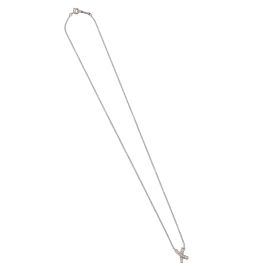 in platino, composto da una catena con pendente impreziosito da diamanti taglio brillante per ct 0.10 circa, chiusura a moschettone, firmato Paloma Picasso e Tiffany, lungh. cm 37 circa, punzone 950, gr. 3. Corredato di scatola.