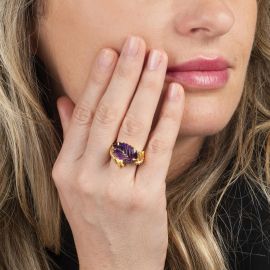 ZANNETTI LEAF-SHAPED AMETHYST IN 18KT YELLOW GOLD