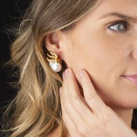 BAROQUE PEARL AND DIAMOND CLIP EARRINGS IN 18KT YELLOW GOLD