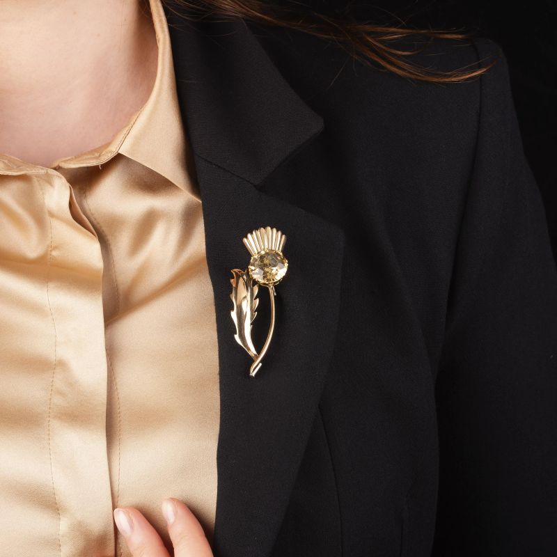 CITRINE QUARTZ BROOCH IN LOW TITLE AND 18KT YELLOW GOLD