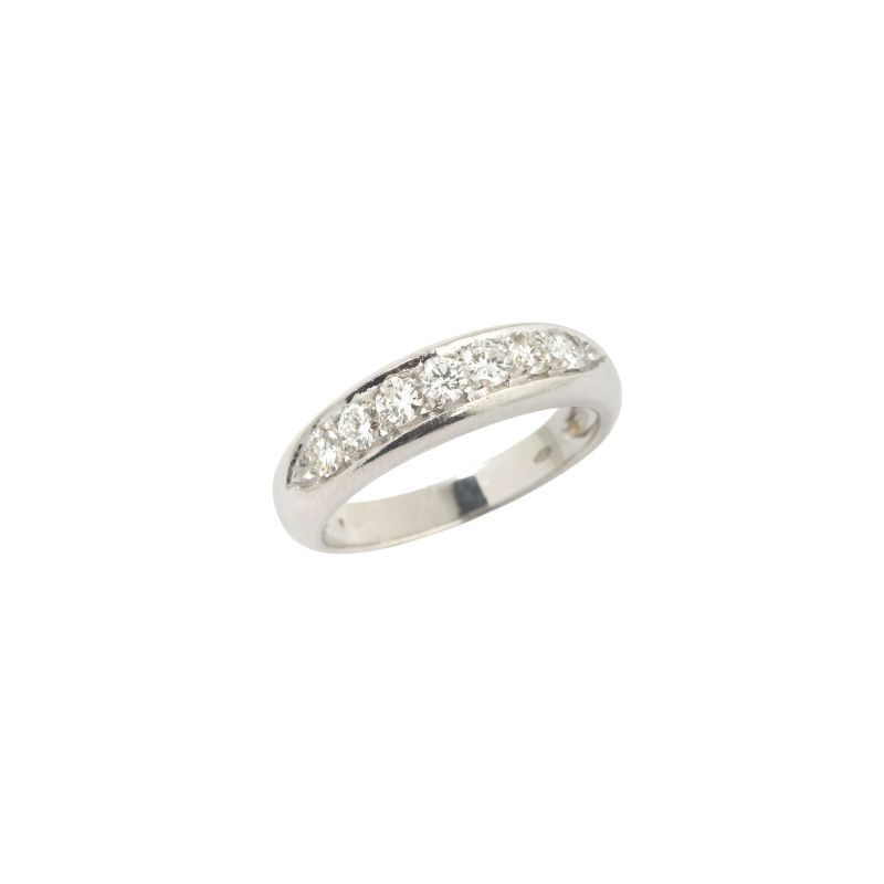 in oro bianco 18kt, impreziosita da diamanti taglio brillante per ct 1 circa, punzone 750, mis. 21/61, gr. 6