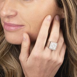 DIAMOND CHEVALIER RING IN 18KT WHITE GOLD