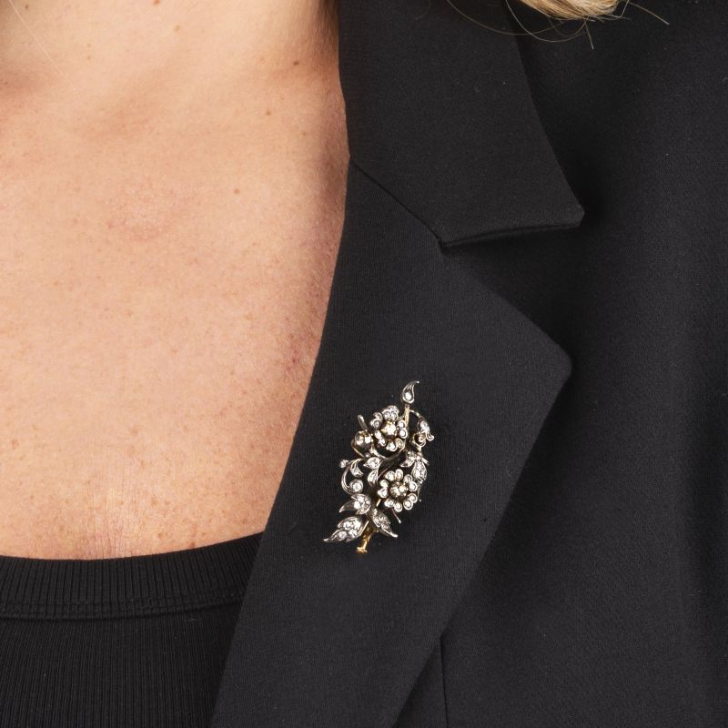 DIAMOND FLOWERING BRANCH BROOCH IN 18KT YELLOW GOLD AND SILVER