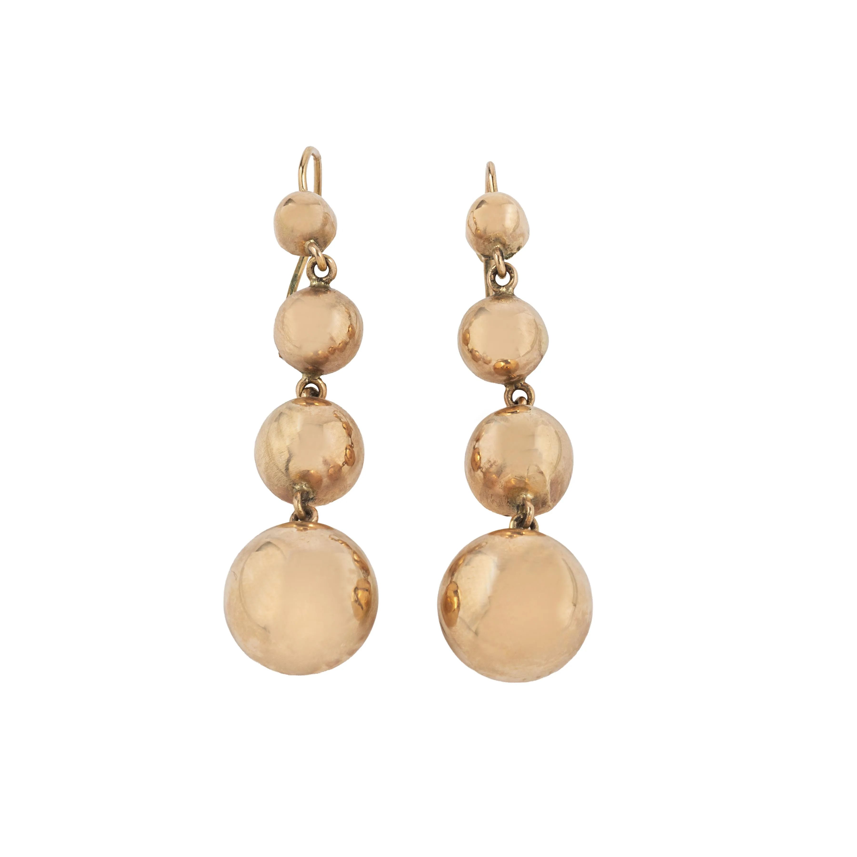 in oro rosa 12kt, composti da sfere digradanti (difetti), chiusura a monachella, punzoni 500 e del fabbricante, lungh. cm 6, gr. 9