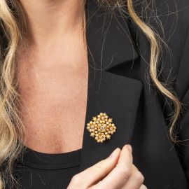 DIAMOND AND PEARL FLORAL BROOCH IN 18KT YELLOW GOLD