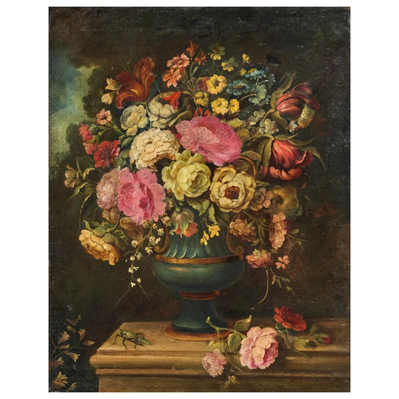 NATURA MORTA CON VASO DI FIORI E GRILLO