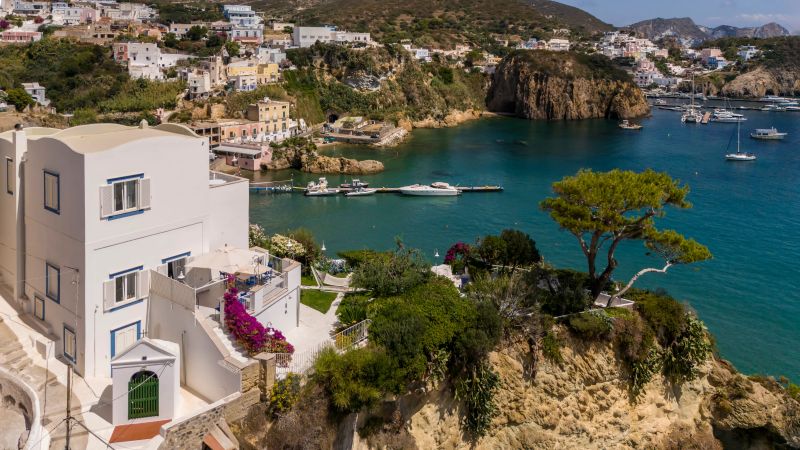 An enchanting property on the magical island of Ponza, casa Fontana, is the kind of place which dreams are made of! Perched above the sea with plunge pool and views to die for, nowhere could be more entiching for anyone searching a chic yet characteristic home in the midst of the mediterranean. Casa Fontana is located in the best spot in town. Perched on a high rock promontory with an eagle-eye view to the town of Ponza the four bedroom house is built on three levels with a scented garden of bougainvillea and jasmine, a plunge pool and far reaching views out to sea. The main living room has floor-to ceiling windows complete with billowing white curtains, while all-white upholstery completed its chic, breezy-Mediterranean style. Wonderful bathrooms and stylish interiors give casa Fontana a true sense of luxurious living and yet this unique villa really does feel like a loved and lived-in home.